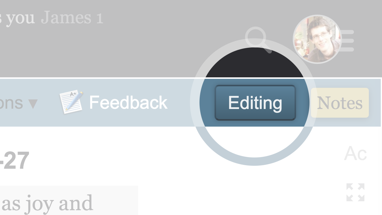 When you want to make changes to your arc, select the Editing button from the module's menu bar. You may also use the spacebar as a shortcut for toggling in and out of editing mode.