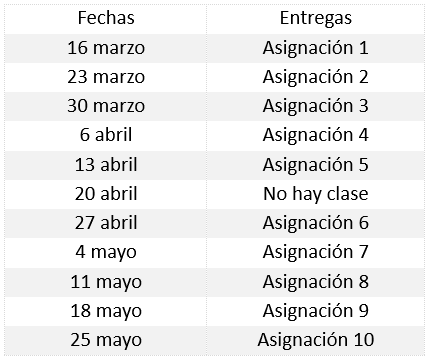 Requisitos semanales (para la opción en vivo): El estudiante debe completar tres tareas cada semana: