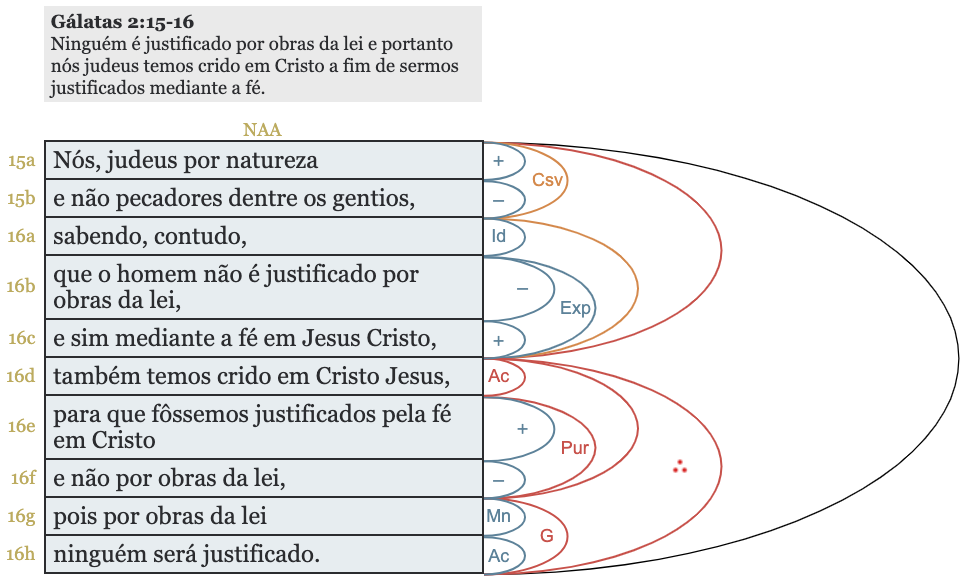 Ponto principal de 15a-16c: Nós, judeus, sabemos que uma pessoa é justificada mediante a fé em Jesus Cristo
