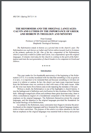 [Think] through the options available for a minister not versed in the original languages. When ministers are inadequately prepared in the original languages they are given only three options. First, they can become experts in note taking and cataloging the opinions of others, relying upon their favorite commentators or siding with whatever position is expedient to them. Second, they can refuse to make a decision and simply present all the options without taking a stand. Or, finally, ministers without proficiency in the original languages can just ignore the difficult issues in a text. Obviously none of these options is acceptable for a minister who is teaching people the very Word of God. If seminaries are training ministers to understand God’s Word and accurately teach it to others, then the only course of action is to teach students the Biblical languages in order that they might walk the steps of the commentators and translators so as to appropriately evaluate their work. This gives the students freedom from being enslaved to the opinions of others and puts them in a position to wrestle directly with the text of Scripture through the aid of the Holy Spirit.