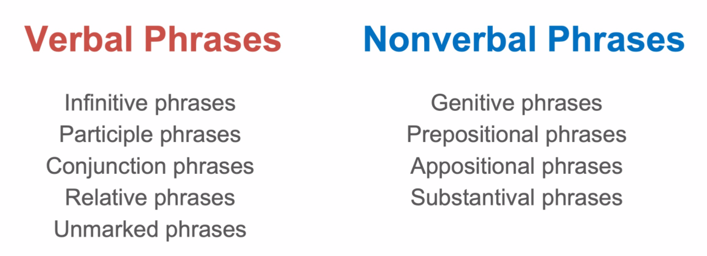 These phrase types can be divided into two families: verbal and nonverbal.