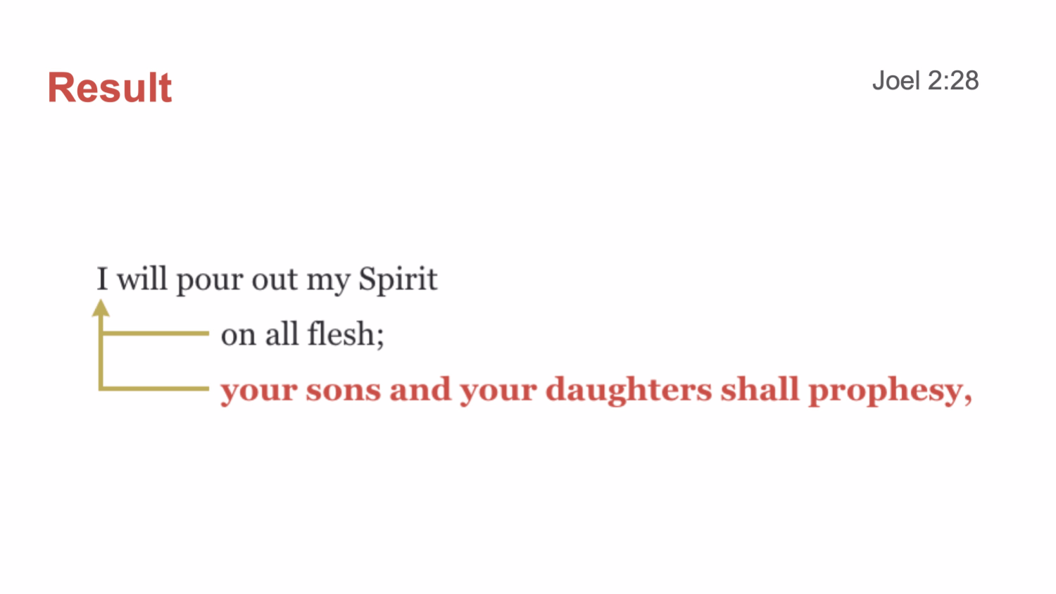 The result of God’s pouring out his Spirit on all flesh is that the sons and daughters of God’s people will prophesy.