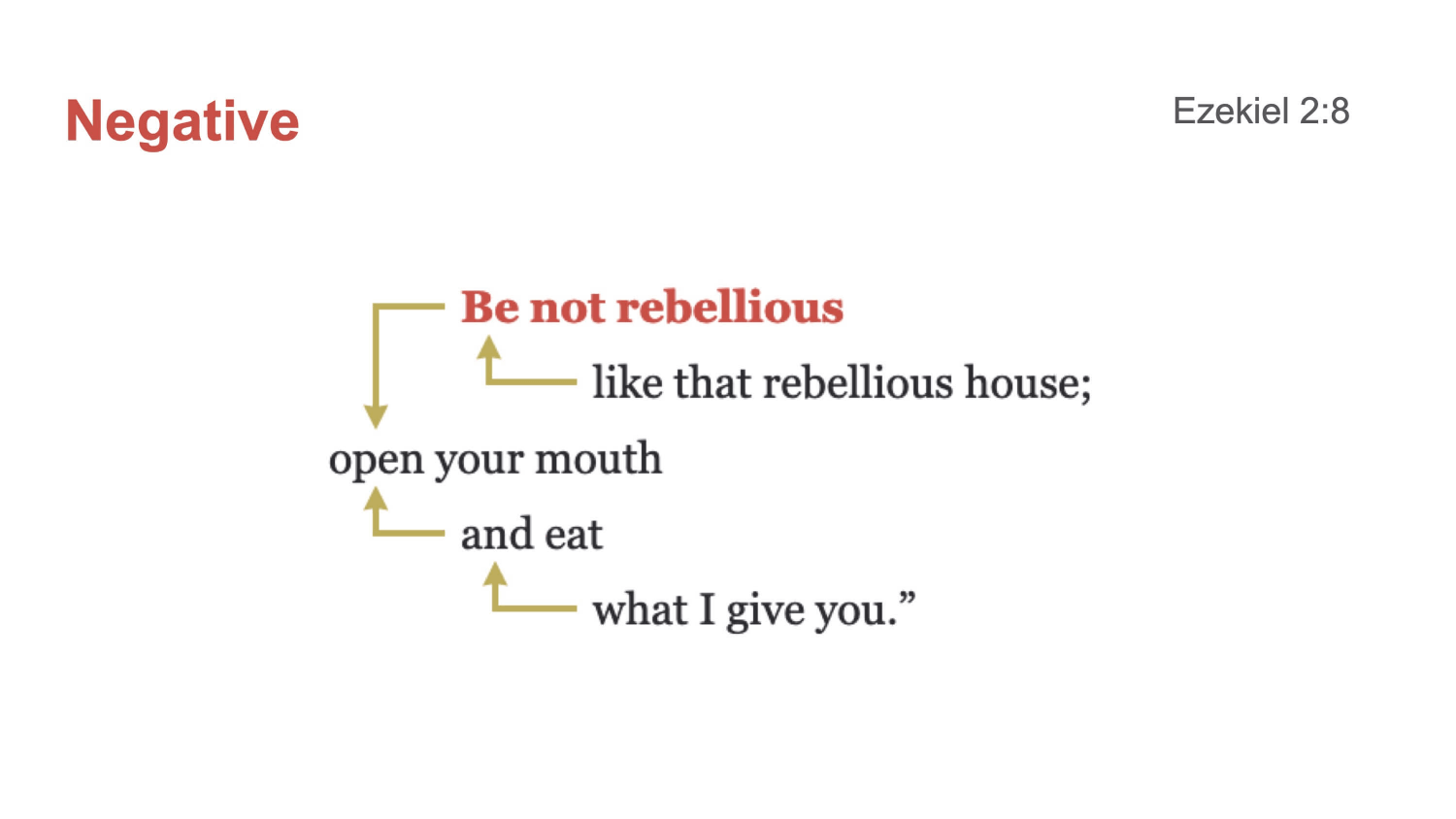 God enforces his command for Ezekiel to open his mouth by ordering him not to be rebellious.