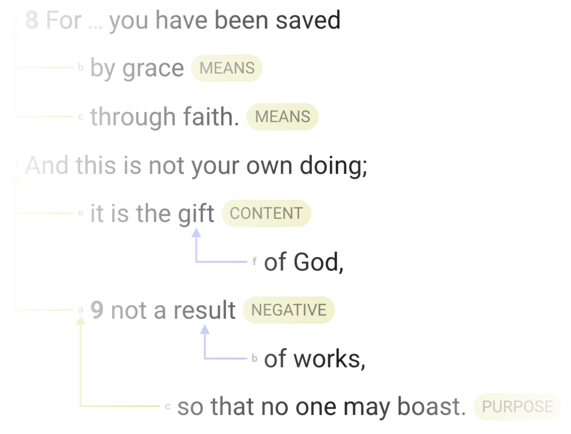 Label the relationships between the phrases identified by yellow arrows.